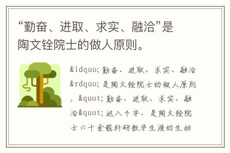 “勤奋、进取、求实、融洽”是陶文铨院士的做人原则。