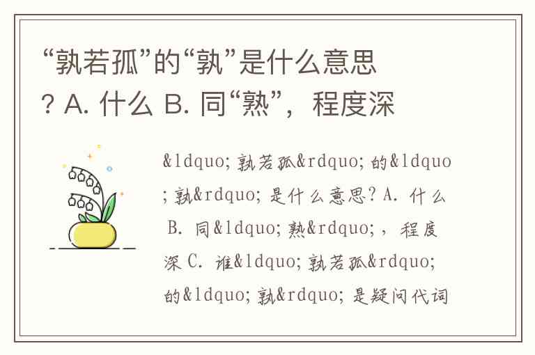 “孰若孤”的“孰”是什么意思? A. 什么 B. 同“熟”,程度深 C. 谁