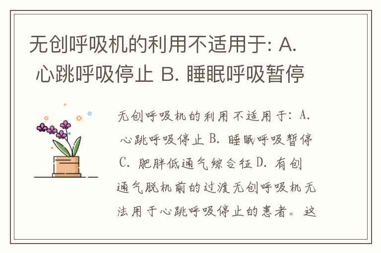 无创呼吸机的利用不适用于: A. 心跳呼吸停止 B. 睡眠呼吸暂停 C. 肥胖低通气综合征 D. 有创通气脱机前的过渡