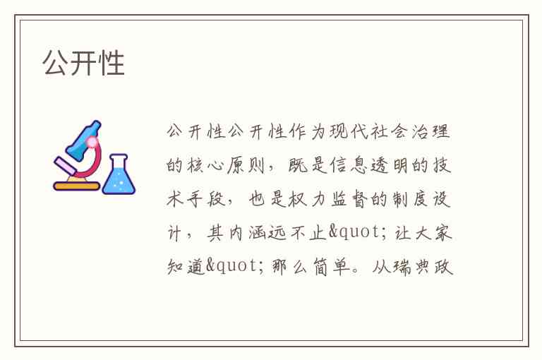 公开性作为现代社会治理的核心原则,既是信息透明的技术手段,也是权力监督的制度设计,其内涵远不止"让大家知道"那么简单。从瑞典政府公开财政预算到科研领域的开放获取期刊运动,从企业财务披露到大学排名数据透明化,公开性已渗透到政治、经济、教育等各个领域,成为衡量社会文明程度的重要标尺。它既要求信息的可获取性,更强调内容的完整性、时效性与可理解性,是一个多维度的系统工程。