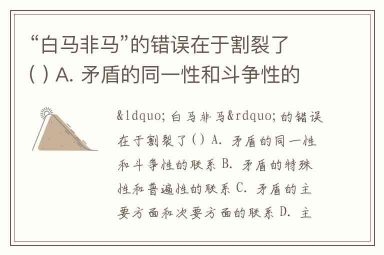 “白马非马”的错误在于割裂了( ) A. 矛盾的同一性和斗争性的联系 B. 矛盾的特殊性和普遍性的联系 C. 矛盾的主要方面和次要方面的联系 D. 主要矛盾和次要矛盾的联系