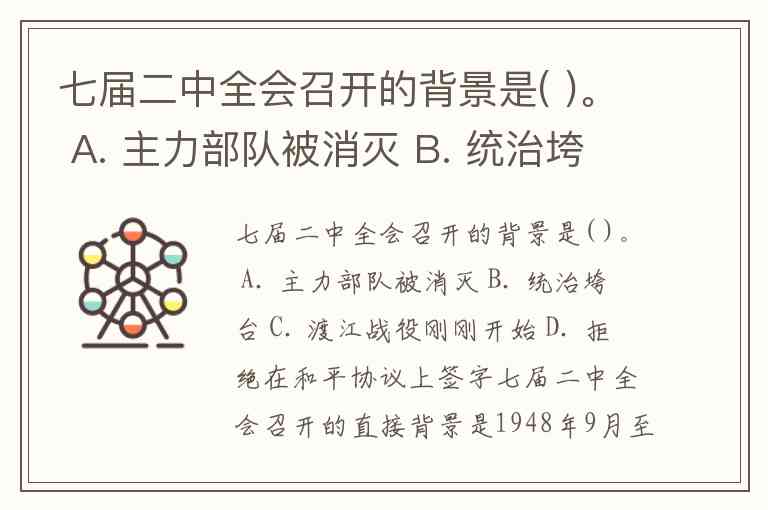 七届二中全会召开的背景是( )。 A. 主力部队被消灭 B. 统治垮台 C. 渡江战役刚刚开始 D. 拒绝在和平协议上签字