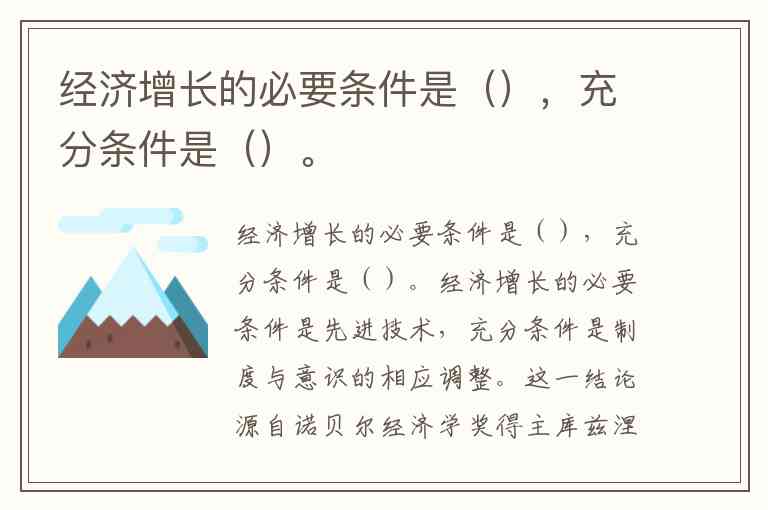 经济增长的必要条件是先进技术,充分条件是制度与意识的相应调整。这一结论源自诺贝尔经济学奖得主库兹涅茨对经济增长的经典定义,他指出增长能力的提升需建立在技术进步基础上,而技术发挥作用则依赖制度与观念的配合。