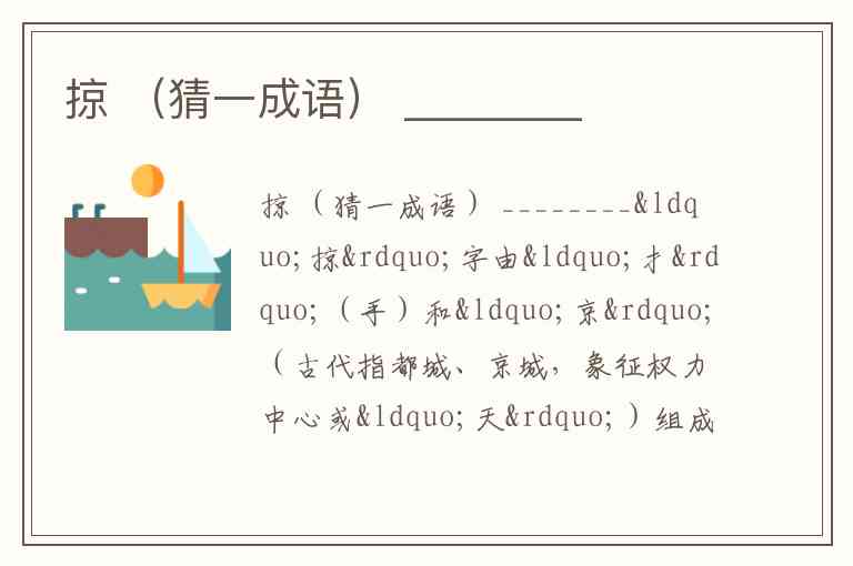 “掠”字由“扌”(手)和“京”(古代指都城、京城,象征权力中心或“天”)组成。从字形拆解来看,“手”旁与“京”的组合,暗喻“用手遮蔽京城(天)”,对应成语一手遮天。这个成语形容依仗权