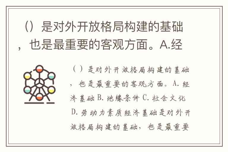 ()是对外开放格局构建的基础,也是最重要的客观方面。A.经济基础 B.地缘条件 C.社会文化 D.劳动力素质