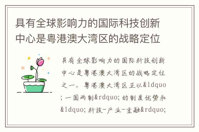具有全球影响力的国际科技创新中心是粤港澳大湾区的战略定位之一。