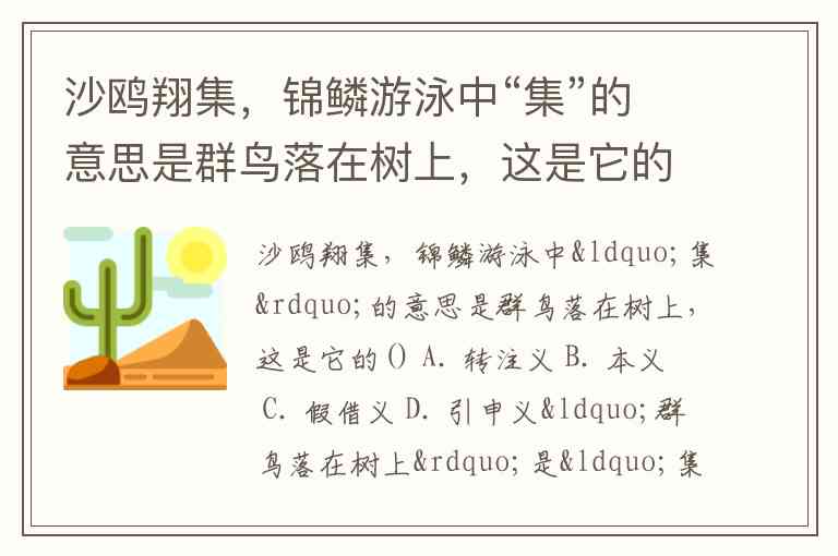 沙鸥翔集,锦鳞游泳中“集”的意思是群鸟落在树上,这是它的() A. 转注义 B. 本义 C. 假借义 D. 引申义