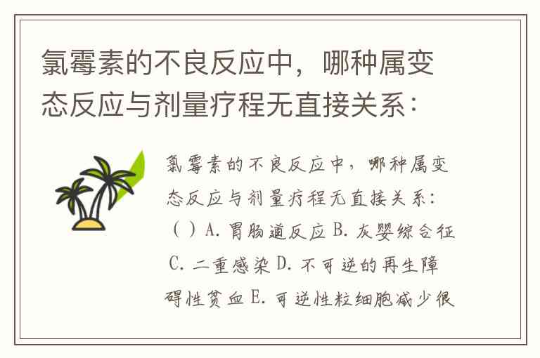 氯霉素的不良反应中,哪种属变态反应与剂量疗程无直接关系:()A.胃肠道反应 B.灰婴综合征 C.二重感染 D.不可逆的再生障碍性贫血 E.可逆性粒细胞减少