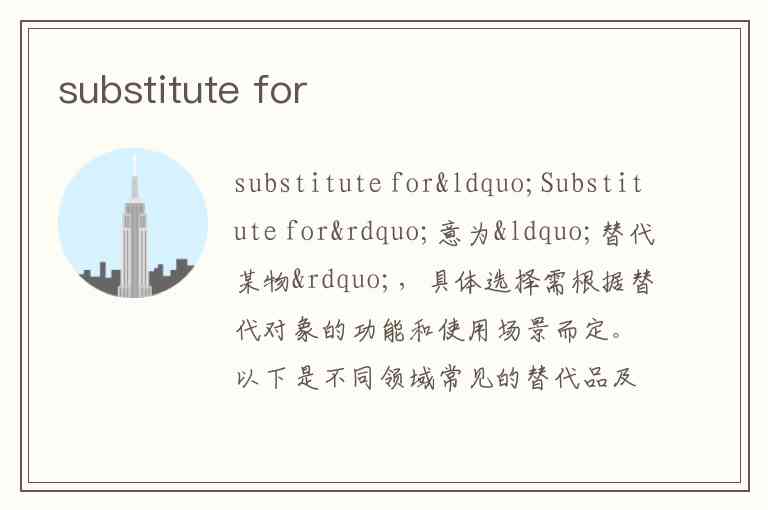 “Substitute for”意为“替代某物”,具体选择需根据替代对象的功能和使用场景而定。以下是不同领域常见的替代品及科学选择方法:
