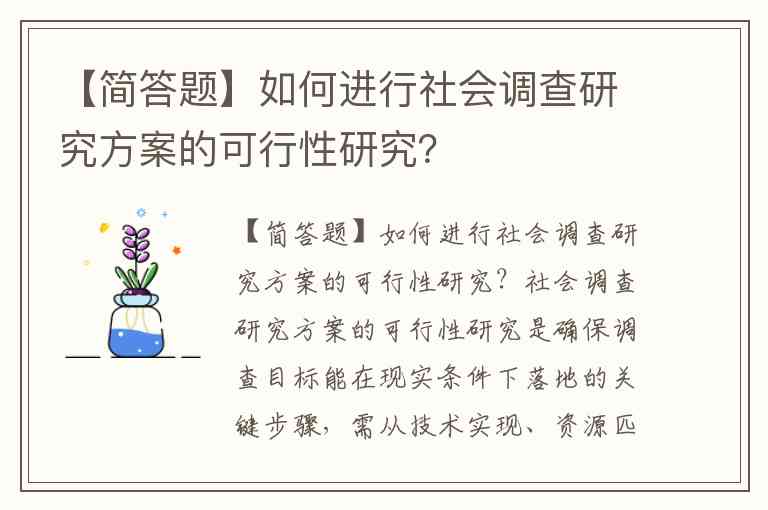 社会调查研究方案的可行性研究是确保调查目标能在现实条件下落地的关键步骤,需从技术实现、资源匹配、风险控制等多维度系统评估。核心思路是通过预调研验证设计科学性、资源测算评估执行可行性、风险预判制定应对策略,最终形成可操作的优化方案。
