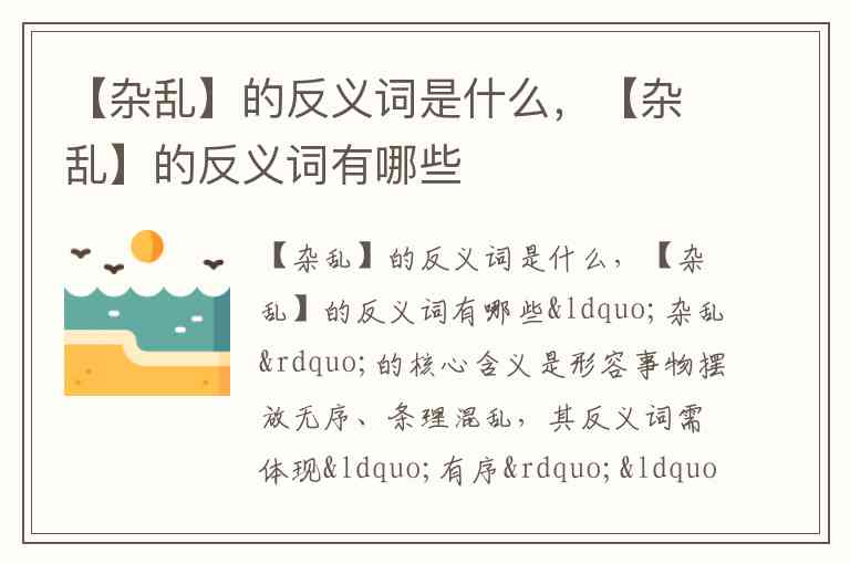 【杂乱】的反义词是什么,【杂乱】的反义词有哪些