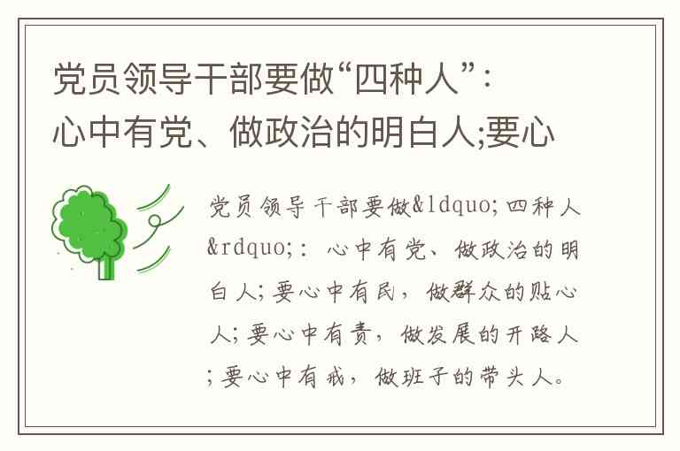 这一答案的关联性在于,在党的组织体系中,“副组长”作为领导班子成员,处于承上启下的关键位置,既是决策执行者也是团队管理者,其职责定位与“四种人”要求高度契合——既要对党忠诚(心中有党)、服务群众(心中有民),也要推动工作(心中有责)、严于律己(心中有戒)。而“组长”通常为主要负责人,更侧重统筹全局;“巡视员”“巡视专员”则属于监督执纪岗位,职责重点与领导班子成员存在差异。因此,“副组长”这一角色最能体现“四种人”所涵盖的综合性领导要求。