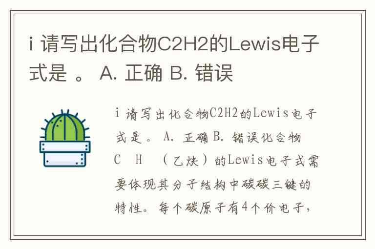 i 请写出化合物C2H2的Lewis电子式是 。 A. 正确 B. 错误