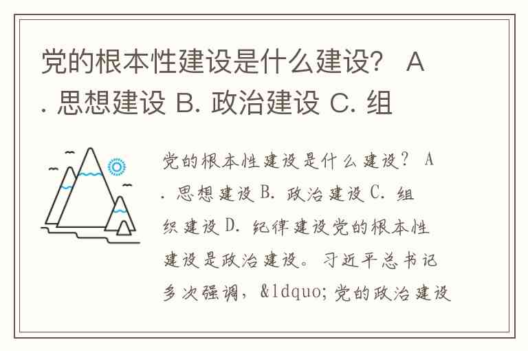 党的根本性建设是什么建设? A. 思想建设 B. 政治建设 C. 组织建设 D. 纪律建设