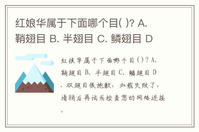 红娘华属于下面哪个目( )? A. 鞘翅目 B. 半翅目 C. 鳞翅目 D. 双翅目