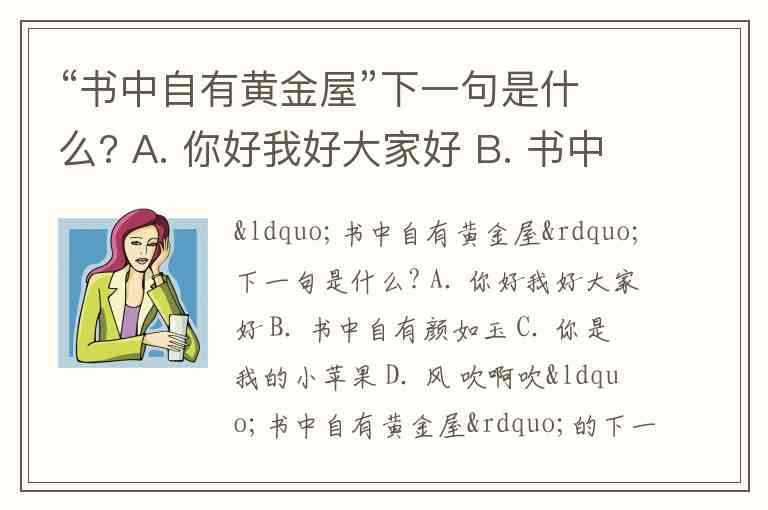 “书中自有黄金屋”下一句是什么? A. 你好我好大家好 B. 书中自有颜如玉 C. 你是我的小苹果 D. 风 吹啊吹