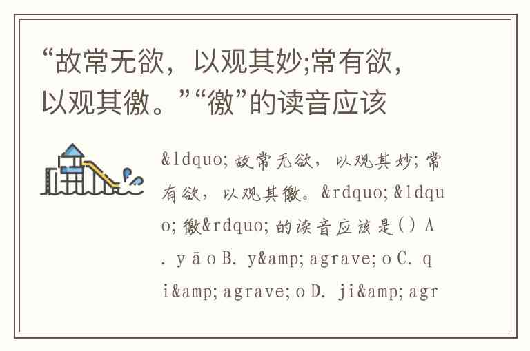 “故常无欲,以观其妙;常有欲,以观其徼。”“徼”的读音应该是( ) A. yāo B. yào C. qiào D. jiào