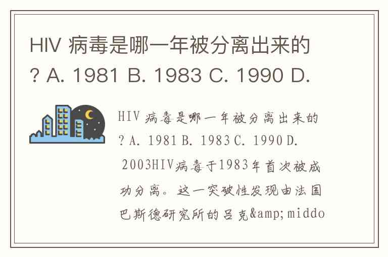HIV 病毒是哪一年被分离出来的? A. 1981 B. 1983 C. 1990 D. 2003