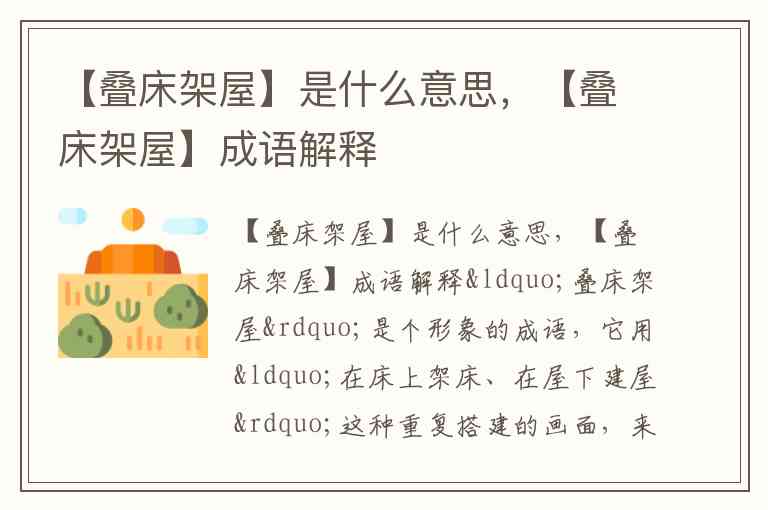 【叠床架屋】是什么意思,【叠床架屋】成语解释