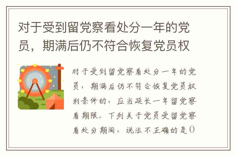 对于受到留党察看处分一年的党员,期满后仍不符合恢复党员权利条件的,应当延长一年留党察看期限。下列关于党员受留党察看处分期间,说法不正确的是()A有表决权、没有选举权和被选举权 B留党察看期间,确有悔改表现的,期满后恢复其党员权利 C坚持不改或者又发现其他应当受到党纪处分的违纪行为的,应当开除党籍 D其党内职务自然撤销