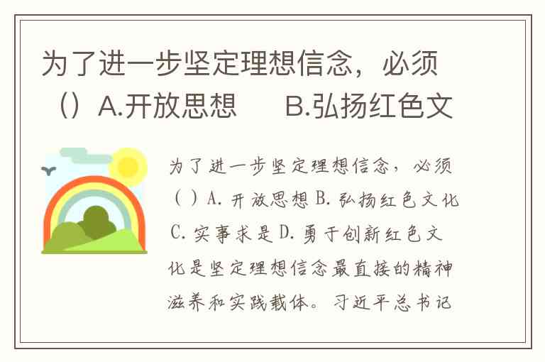 为了进一步坚定理想信念,必须()A.开放思想 B.弘扬红色文化 C.实事求是 D.勇于创新