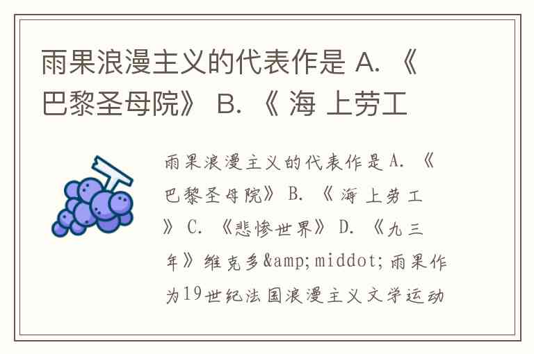 雨果浪漫主义的代表作是 A. 《巴黎圣母院》 B. 《 海 上劳工》 C. 《悲惨世界》 D. 《九三年》