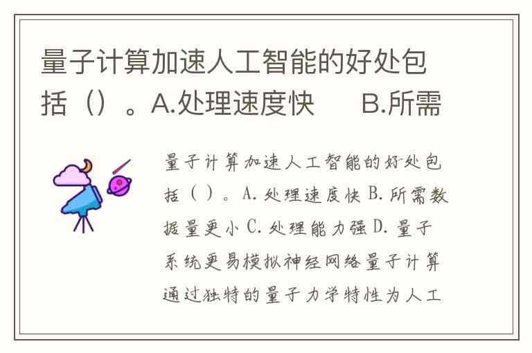 量子计算加速人工智能的好处包括()。A.处理速度快 B.所需数据量更小 C.处理能力强 D.量子系统更易模拟神经网络