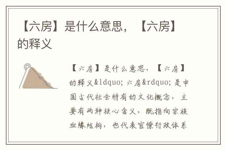 “六房”是中国古代社会特有的文化概念,主要有两种核心含义,既指向宗族血缘结构,也代表官僚行政体系。