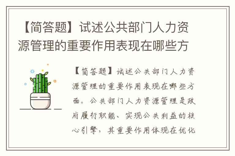 【简答题】试述公共部门人力资源管理的重要作用表现在哪些方面。