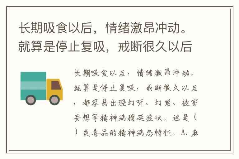 长期吸食以后,情绪激昂冲动。就算是停止复吸,戒断很久以后,都容易出现幻听、幻觉、被害妄想等精神病稽延症状。这是()类毒品的精神病态特征。A.麻醉类 B.海洛因 C.苯丙胺(冰毒) D.杜冷丁