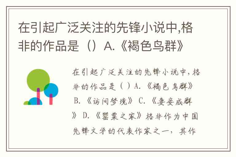在引起广泛关注的先锋小说中,格非的作品是()A.《褐色鸟群》 B.《访问梦境》 C.《妻妾成群》 D.《罂粟之家》