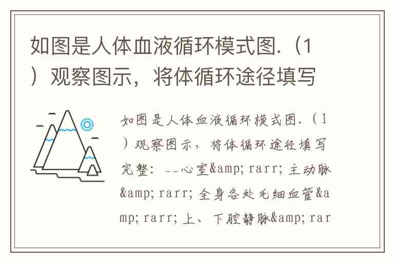 (1)人体血液循环分为体循环和肺循环两部分。体循环的起点是左心室,血液从左心室泵入主动脉,通过各级动脉分支到达全身各处毛细血管,与组织细胞进行物质交换后,再经各级静脉汇集至上、下腔静脉,最终回流到右心房。因此,完整途径为:左心室→主动脉→全身各处毛细血管→上、下腔静脉→右心房。