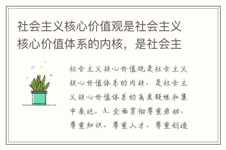 社会主义核心价值观是社会主义核心价值体系的内核,是社会主义核心价值体系的高度凝练和集中表达。A.全面贯彻尊重劳动、尊重知识、尊重人才、尊重创造的方针,不断增强全社会的创造活力 B.坚持党的群众路线,加强和改进新形势下的群众工作 C.妥善协调各方面的利益关系,正确处理人民内部矛盾;健全工作机制,维护社会稳定 D.加强社会建设和管理,推进社会管理体制创新