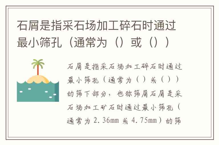 石屑是采石场加工矿石时通过最小筛孔(通常为 2.36mm 或 4.75mm)的筛下部分,也称筛屑,这一标准在交通部新规范中已有明确界定。从筛网目数对照表来看,2.36mm 对应 8 目筛网,4.75mm 对应 4 目筛网,这两种尺寸是砂石行业区分石屑与其他集料(如石子、石粉)的关键指标。