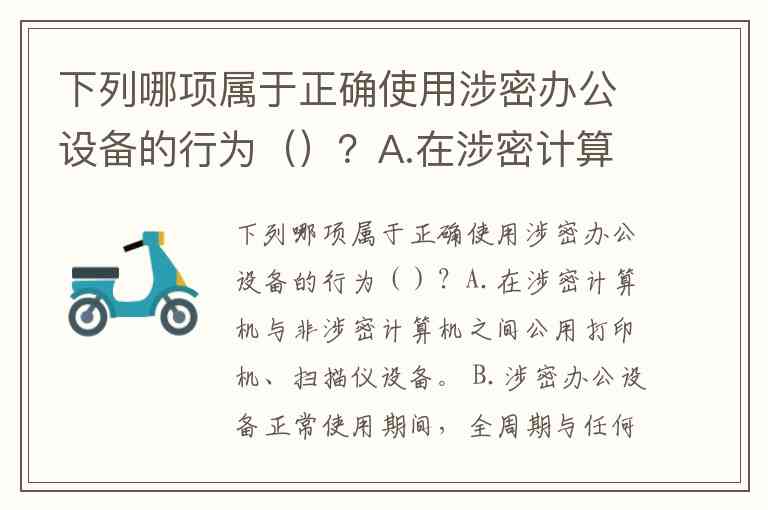 下列哪项属于正确使用涉密办公设备的行为()?A.在涉密计算机与非涉密计算机之间公用打印机、扫描仪设备。 B.涉密办公设备正常使用期间,全周期与任何公共信息网络物理隔离。 C.将原处理涉密信息的多功能一体机接入非涉密计算机使用。 D.将涉密办公设备接入普通电话线。