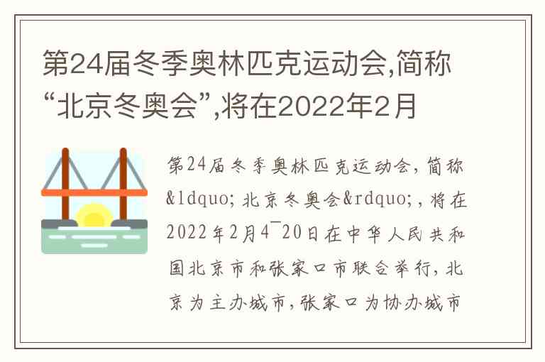 第24届冬季奥林匹克运动会,简称“北京冬奥会”,将在2022年2月4~20日在中华人民共和国北京市和张家口市联合举行,北京为主办城市,张家口为协办城市,这是中国继北京奥运会、南京青奥会后,第三次举办的奥运赛事,也是中国首次举办的冬季奥林匹克运动会。国际奥林匹克委员会是( ) A. 区域性、非政府国际组织 B. 专业性、政府间国际组织 C. 专业性、非政府国际组织 D. 世界性、政府间国际组织