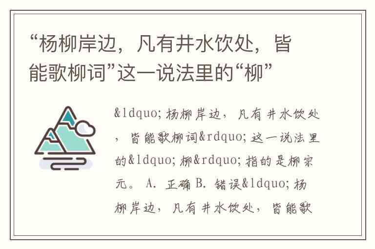 “杨柳岸边,凡有井水饮处,皆能歌柳词”这一说法里的“柳”指的是柳宗元。 A. 正确 B. 错误