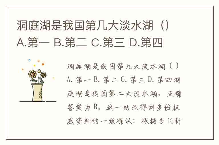 洞庭湖是我国第几大淡水湖()A.第一 B.第二 C.第三 D.第四