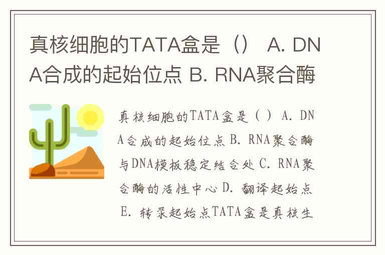 真核细胞的TATA盒是() A. DNA合成的起始位点 B. RNA聚合酶与DNA模板稳定结合处 C. RNA聚合酶的活性中心 D. 翻译起始点 E. 转录起始点