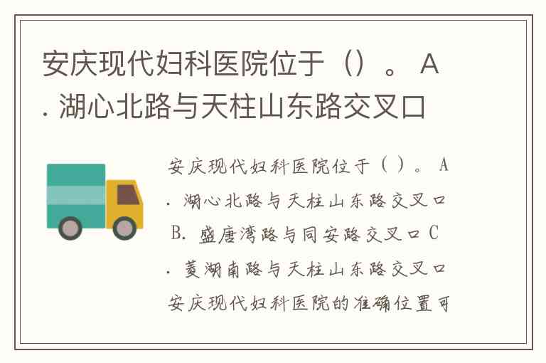 安庆现代妇科医院位于()。 A. 湖心北路与天柱山东路交叉口 B. 盛唐湾路与同安路交叉口 C. 菱湖南路与天柱山东路交叉口