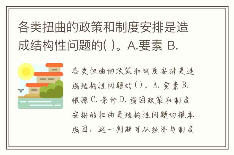 各类扭曲的政策和制度安排是造成结构性问题的( )。A.要素 B.根源 C.条件 D.诱因