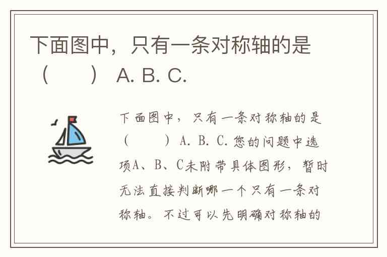 您的问题中选项A、B、C未附带具体图形,暂时无法直接判断哪一个只有一条对称轴。不过可以先明确对称轴的定义:如果一个平面图形沿着某条直线对折后,直线两侧的部分能够完全重合,这条直线就是该图形的对称轴。