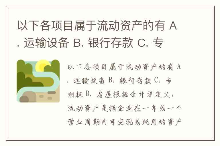 以下各项目属于流动资产的有 A. 运输设备 B. 银行存款 C. 专利权 D. 房屋