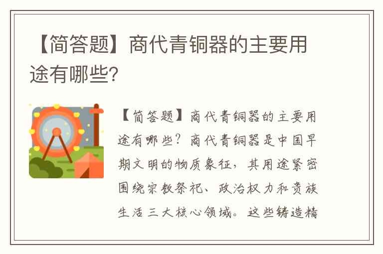 【简答题】商代青铜器的主要用途有哪些?