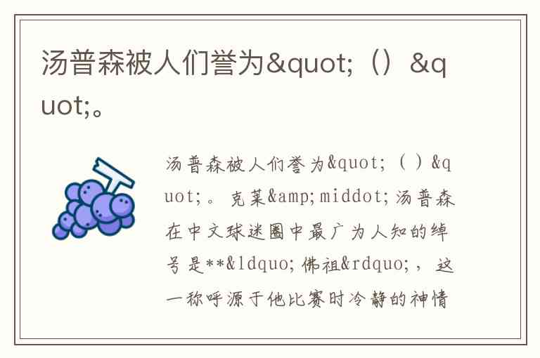 汤普森被人们誉为"()"。
