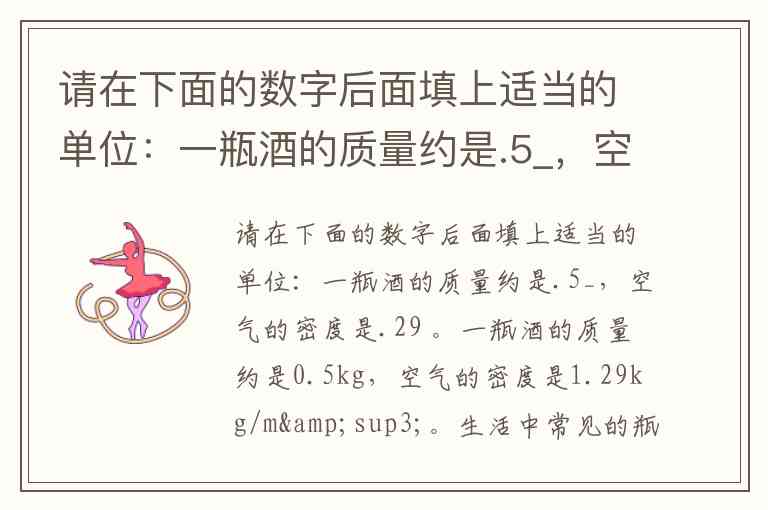 请在下面的数字后面填上适当的单位:一瓶酒的质量约是.5_,空气的密度是.29 。