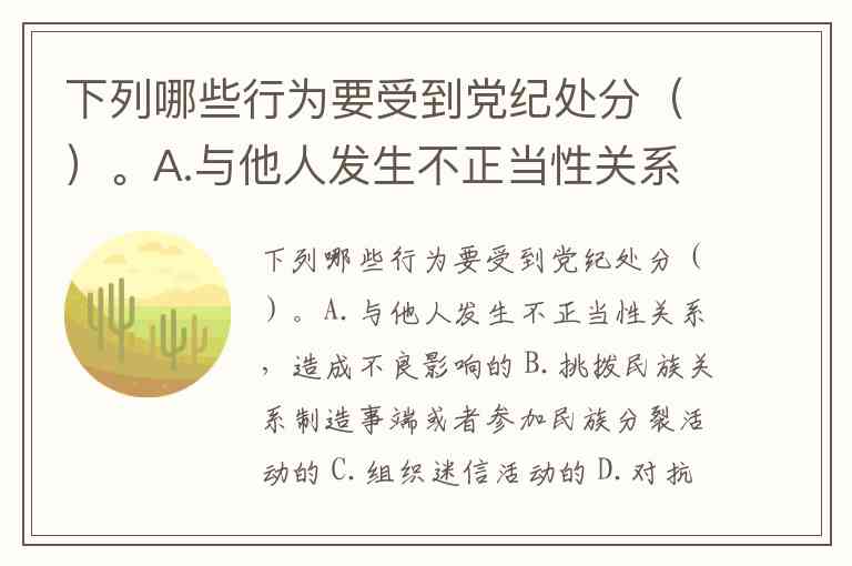 下列哪些行为要受到党纪处分()。A.与他人发生不正当性关系,造成不良影响的 B.挑拨民族关系制造事端或者参加民族分裂活动的 C.组织迷信活动的 D.对抗组织审查,包庇同案人员的