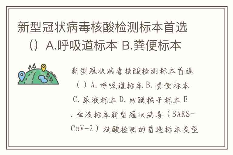 新型冠状病毒核酸检测标本首选 ()A.呼吸道标本 B.粪便标本 C.尿液标本 D.结膜拭子标本 E.血液标本