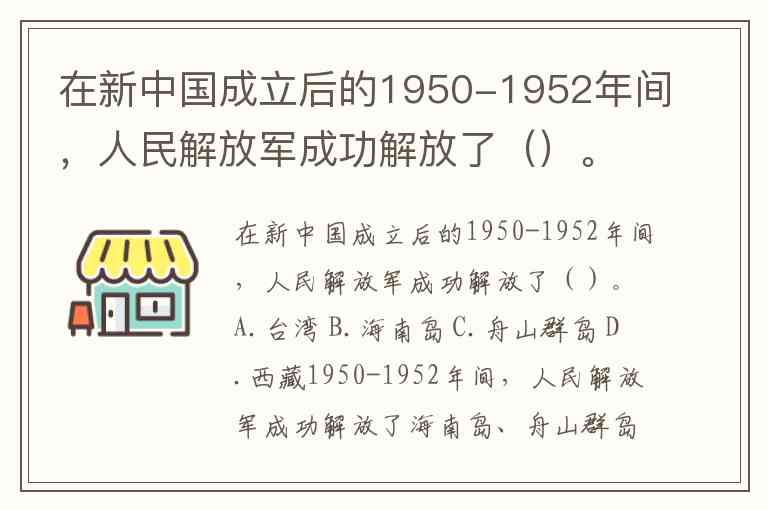 在新中国成立后的1950-1952年间,人民解放军成功解放了()。A.台湾 B.海南岛 C.舟山群岛 D.西藏