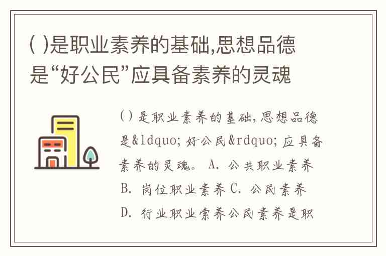 ( )是职业素养的基础,思想品德是“好公民”应具备素养的灵魂。 A. 公共职业素养 B. 岗位职业素养 C. 公民素养 D. 行业职业索养